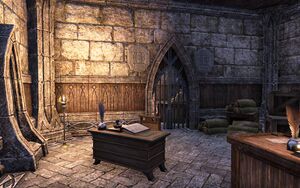 Это двухэтажное здание в стиле альтмеров, расположенное в южной части города. На каждом этаже можно найти огонь - место для приготовления, доступный для приготовления еды. Все предметы и контейнеры для хранения в банке, включая стол, комод и винную стойку, принадлежат принадлежат. Охранник Марбрука наблюдает за помещением. Главный сейф находится справа от стойки.Внутри.Хранилище банка
