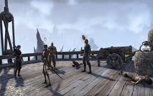 Капитан Одноглазка: "Почти все мы застряли в Хладной Гавани во время первого Слияния миров. Мы подлатали мой корабль и поклялись, что выберемся оттуда и вернемся в Нирн все вместе. Правда, мы не знали, как это сделать. Полагаю, мне стоит поблагодарить второе Слияние миров: мы вышли тем же путем, что и вошли."