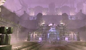 Храм ведет в огромную природную пещеру, в центре которой с потолка свисает перевернутый ксанмеер. Мост, защищенный головоломками маятник, — единственный путь в запертое хранилище.