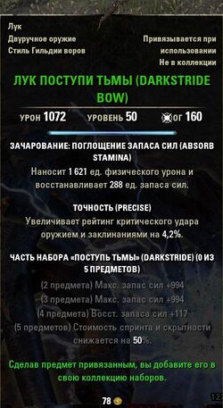 Чтобы очистить эту локацию и отметить ее как пройденную, вам нужно убить следующих боссов: С этого босса можно добыть: Лук поступи тьмы (DARKSTRIDE BOW) ДостижениеСуществует одно "Достижение" связанное с этой локацией: