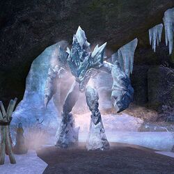 Альфрост: "Совсем нет. Он должен стоять неподвижно и все охлаждать. Но сейчас он поскрипывает, замахиваясь на все, что теплее сосульки. Я неплохой охотник, но атронахи обычно в мою добычу не входят."