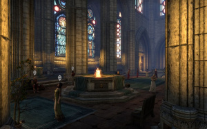 Кор: "Ей нравятся храмы, но после появления проблем в Кватче она стала обходить стороной большой собор. В последнее время она посещала великую часовню Дибеллы в Анвиле. Думаю, ритуалы успокаивают ее. Может, сходишь со мной в Анвил и поможешь найти Хильдегарду?"