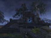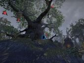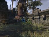 | Рядом с деревом Хист в центре Клокочущей Трясины | Думаю, брешь в этом аргонианском поселении. Обожаю архитектуру аргониан. Кому нужны гвозди и прямые углы, когда можно просто навалить кучу грязи и назвать это домом! |