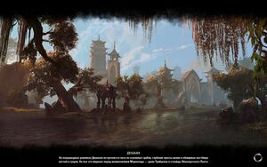 Дешаан (ориг. Deshaan) это регион на юге Морровинда. Его равнины, раскинувшиеся вокруг Храма Трибунала, очень плодородны. Южные территории региона постепенно становятся более болотистыми и, в конечном итоге, переходят в болота Чернотопья. Кочевники Морровинда, эшлендеры, часто встречаются в Дешаане. Они могут легко обидеться на путника, незнакомого с их обычаями, однако могут и одарить каким-либо подарком понравившегося путешественника. Попавшим в пепельную бурю странникам, эшлендеры могут предложить приют. Локации![]() Города