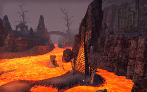 Бродит-среди-Пепла: "Да, это я. Взгляни на это. Это не лава прошла обычным путем. Это отпечатки ног. Здесь прошел дух гнева. Упрямый Гирвас не прислушивается к моим предостережениям. Он считает, что это следствие извержения."