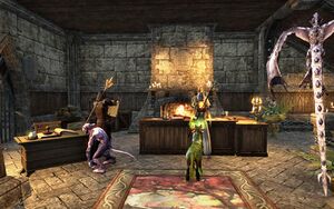 Это двухэтажное здание в стиле альтмеров, расположенное в южной части города. На каждом этаже можно найти огонь - место для приготовления, доступный для приготовления еды. Все предметы и контейнеры для хранения в банке, включая стол, комод и винную стойку, принадлежат принадлежат. Охранник Марбрука наблюдает за помещением. Главный сейф находится справа от стойки.Внутри.Хранилище банка