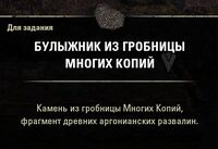- Отправляйтесь в Зубы Ситиса, Гробницу Многих Копий и Пещеру Цофир и найдите подходящие обломки.