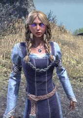 Фенрар: "Еще один член городской стражи. Эта девушка — отважная воительница. Ее мать, Хельси, вложила меч в руку Бьоры, когда та была еще ребенком. Хафскьяр и Бьора с детства были очень близки. Надеюсь, она сумеет уберечь его от беды."