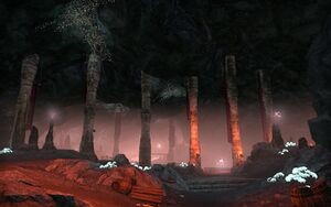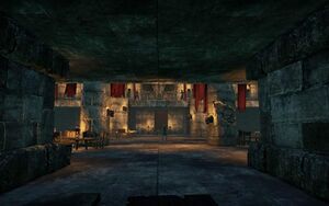Мировой босс Тумма-Максат проживающий здесь будет мешать вам добраться до входа в логово Темного братства. Когда вы его победите и пройдете дальше, вам надо будет поговорить с Эвели Острая Стрела, стоящей перед дверью в логово.
