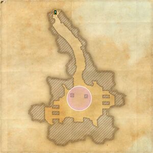 Сундук можно найти в северо-западной части некрополя, на скалистом уступе над песком возле моста, пересекающего ущелье.