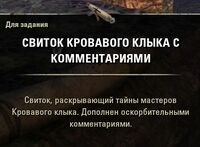 - Убейте Ри'Атараши и соберите три Свиток Кровавого клыка (Annotated Goutfang Scrolls).