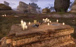 Этайя: "Положи мешочек с подношением на алтарь растущих лун неподалеку. Затем положи мое письмо на алтарь ярких, полных лун. И, наконец, зажги свечу за Индала на алтаре убывающих лун на холме."