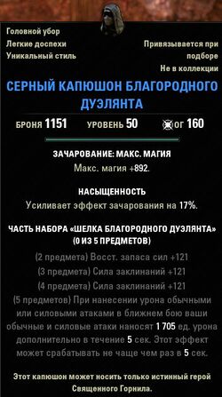 - Серный капюшон благородного дуэлянта (Brimstone Cowl of the Noble Duelist)