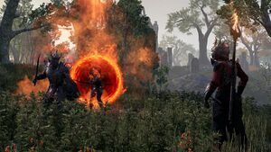 «Мерунес Дагон пытается связать между собой Нирн и Мертвые Земли, чтобы начать вторжение, и эти порталы — его первые эксперименты, — объясняет Джейсон Барнс, ведущий разработчик области главы „Черный Лес“. — Руководит этой операцией — Хаосид — Герцог Бури, генерал его войска. Он охраняет таинственное устройство, которое, по-видимому, крайне важно для планов Дагона».
