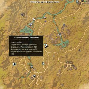 Разбитая арка (ориг.Broken Arch) является одной из локаций в Марке Смерти. В руинах находится специальное место ремесла, где вы можете создавать предметы из набора Ярость Хандинга (Hunding's Rage). Здесь можно найти: