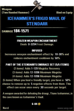 С этого босса можно добыть: Icehammer's Frigid Maul of Stendarr (Icehammer's Frigid Maul of Stendarr) Небесный осколок