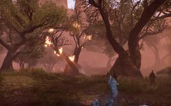 Пиркальмо: "А... ты их заметил. Что ж, это правда. Я намеревался призвать простую магическую силу, чтобы убрать деревья. Мой народ не заключает договоров с даэдра, знаешь ли. Хм... но что-то пошло не так. Совсем... совсем не так."