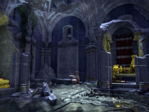 Оказавшись внутри, вы окажетесь в коротком коридоре, который называется Главный зал. В конце коридора вы должны упасть в затопленную комнату, наполненную сокровищами. Эта комната содержит четыре подсказки, необходимые для квеста. После того, как вы восстановите их все, вы не сможете вернуться назад, чтобы выйти из руин. Вместо этого боковой проход ведет к односторонней двери обратно в главный зал.