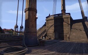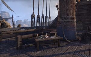 Когда вы доберетесь до «Краса Балфиеры» и окажитесь на палубе, то вы заметите раненую данмерку Лласи Оморен. Оказывается она пришла за чертежами и пробравшись на корабль попала в ловушку. Поговорите с ней.